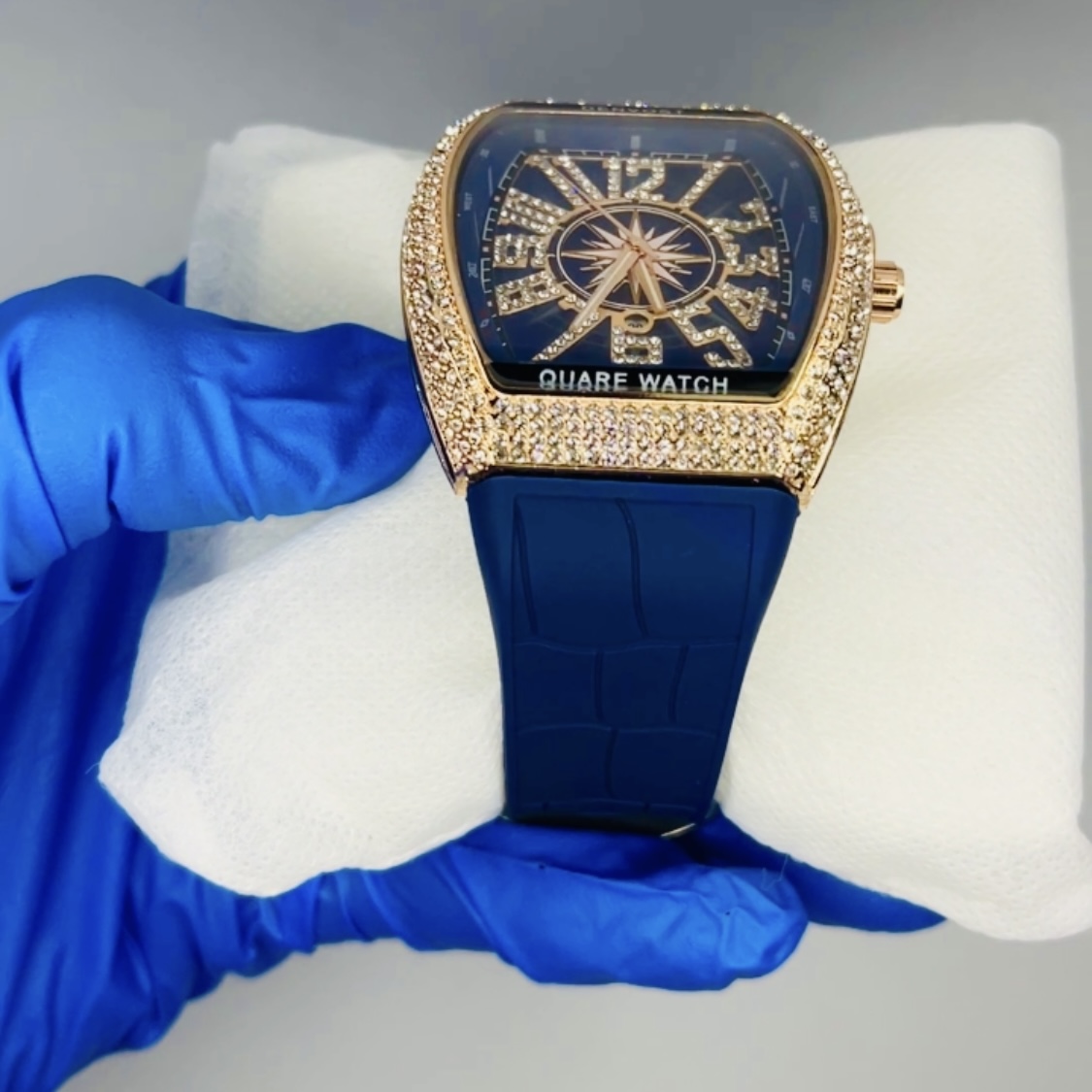FRANK MULLER BLUE STRAPS WITH GOLDEN DIAMOND WATCH